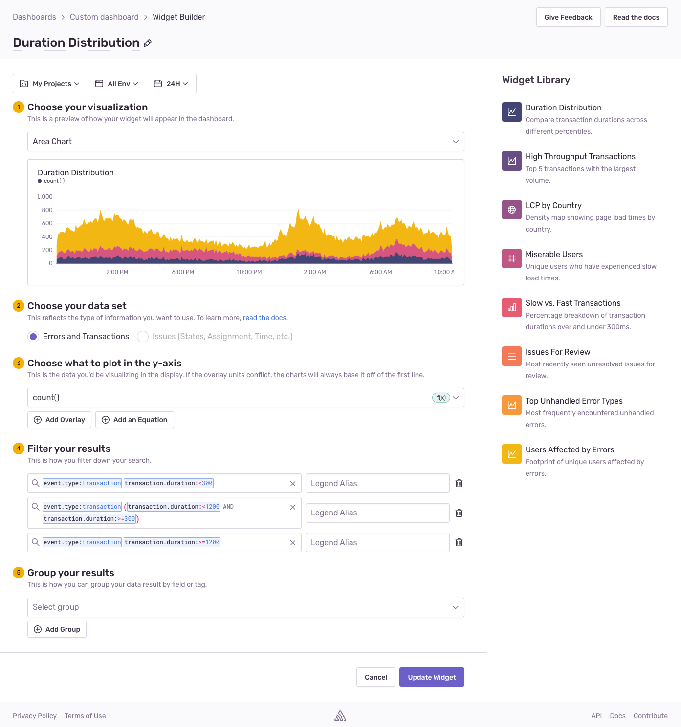 Learn about Sentry's library of prebuilt widgets that you can use in your custom dashboards.