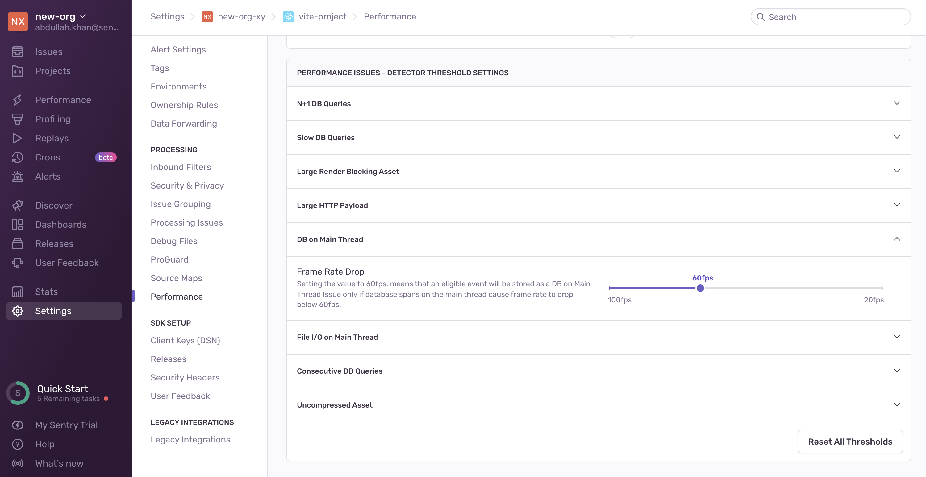 Database on Main Thread detector threshold settings